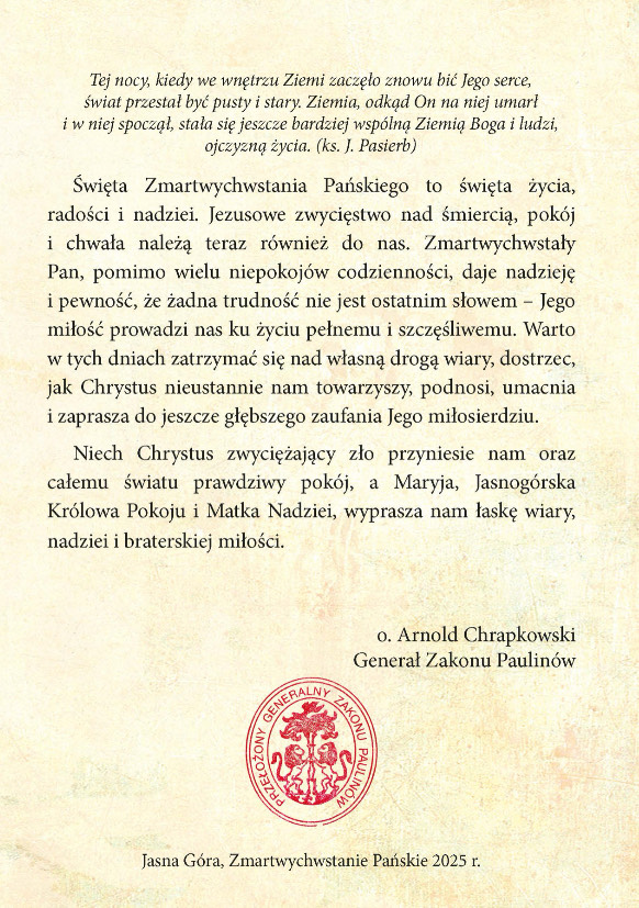 Jasna Góra, Zmartwychwstanie Pańskie 2025 r.